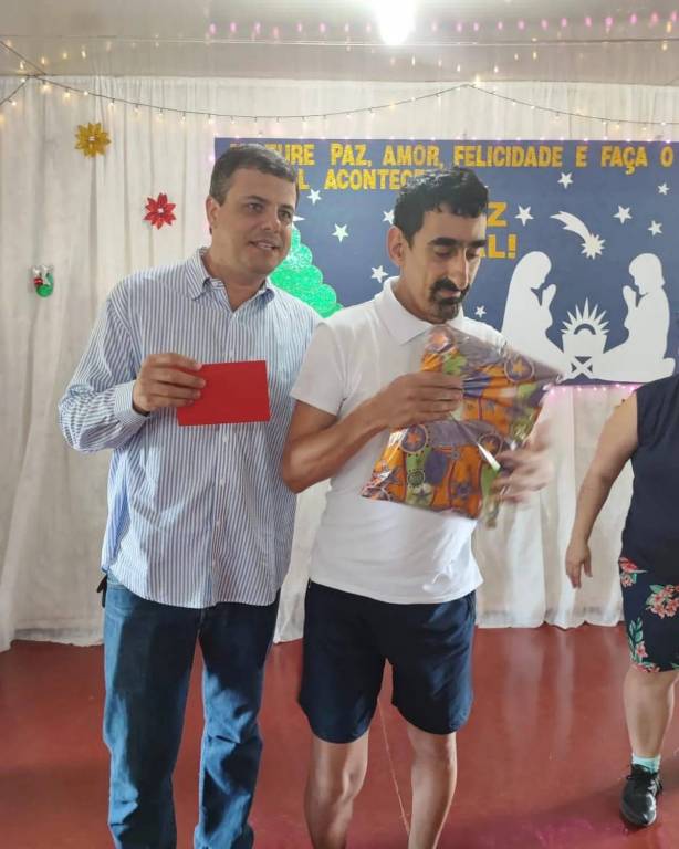 A família rotária de Ouroeste realizou no dia 08/12/2022 doação de 44 mochilas aos alunos da APAE da cidade vizinha de Indiaporã.