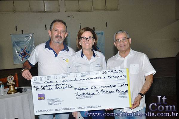 Durante reunião ordinária do Rotary Club de Itápolis, no dia 05 de novembro, foi realizada a entrega do cheque referente ao resultado da 1ª Costela no Varal realizada 100% em prol da APAE de Itápolis. A entrega do cheque, pela Presidente Vandeléa Palhari e pelo governador assistente Nivaldo Ferraro para o presidente da APAE Dr Jorge Henrique Mello do Amaral no valor de R$26.552,00.