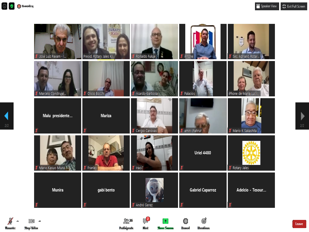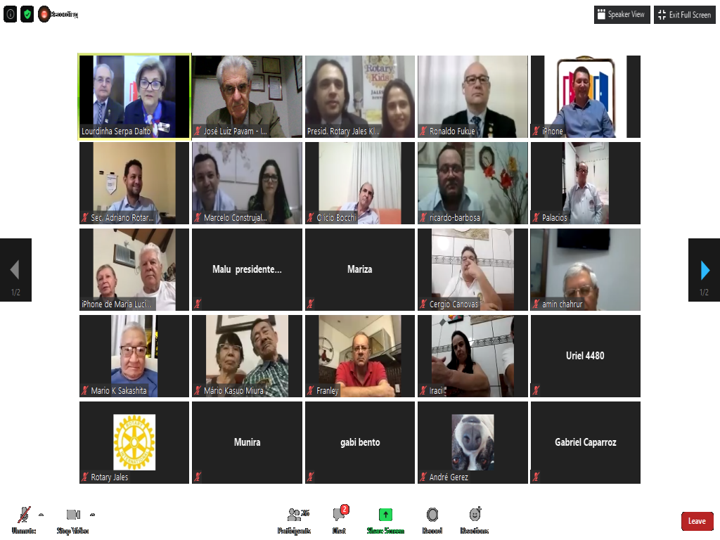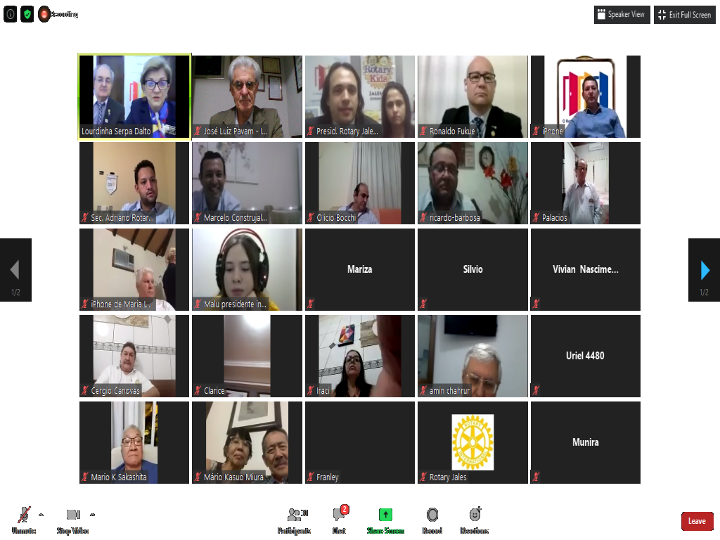 A governadora do Distrito 4480, Lourdinha Serpa Dalto, acompanhada de seu esposo o governador Beninho Dalto (2006-07), esteve em visita oficial ao Rotary Club de Jales na noite do dia 6 de agosto. O clube é presidido pelo rotariano Kleber Errera de Souza e tem na presidência da Casa da Amizade, a esposa de Kleber, Natália. Também participaram da reunião virtual a presidente do Interact Club de Jales, Maria Lúcia Pereira Alves, e do Rotary Kids, a pequena Valentina Paz Landim. Após as suas explanações, com uma radiografia do Distrito, a governadora Lourdinha apresentou um diagnóstico do clube jalesense, reforçando a necessidade de doação à Fundação Rotária, realização de projetos de Subsídios Distritais e Globais e ainda aumento do quadro associativo, abrindo-se a possibilidade para admissão de mulheres e pessoas com idade média de 30 anos.