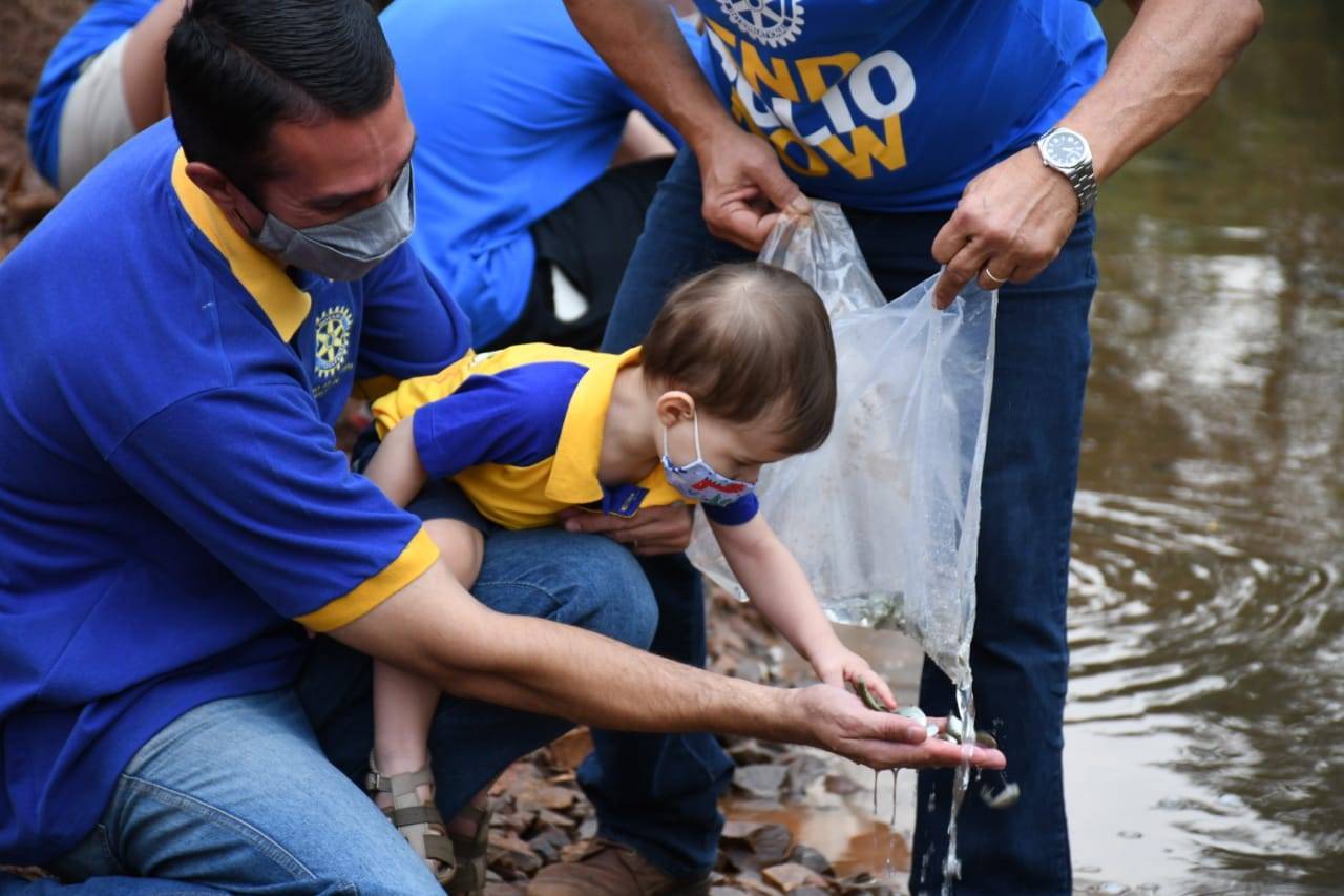 Rotary Club Olímpia Integração solta peixes em rio da cidade